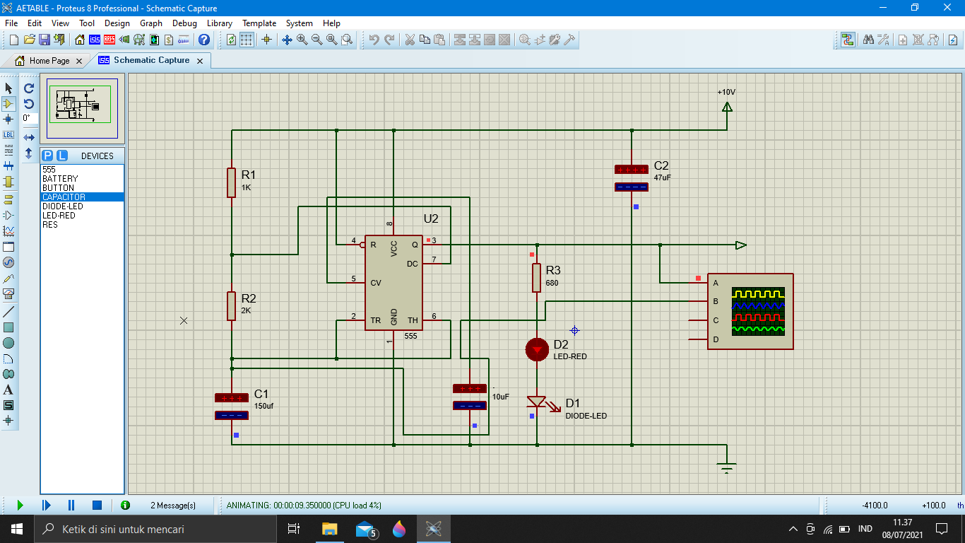 Cari rumus perhitungan astable, dan bandingkan hasil simulasi dengan hasil perhitungan dengan rumus.